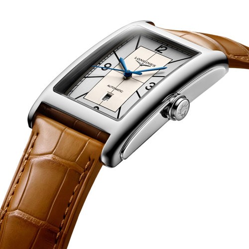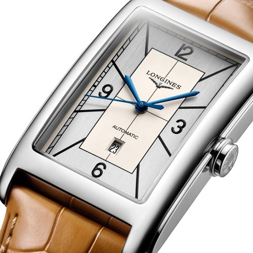 预订款1个月 LONGINES/浪琴 黛绰维纳系列 男女同款银色自动机械精钢表壳和鳄鱼皮表带腕表28.2X47毫米L5.767.4.73.3(新品手表)