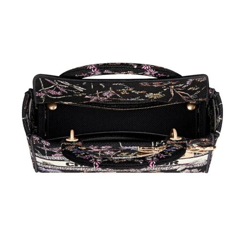 DIOR/迪奥24新款 女士中号黑色帆布多色植物动物刺绣手提包M0565OEGM_M911(新品包包)