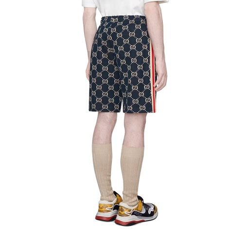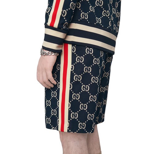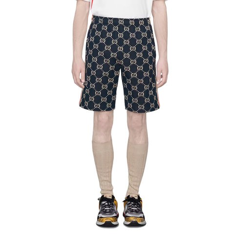 【服装】 GUCCI/古驰 22年秋冬新款 男士蓝色/象牙色纯棉老花提花短裤474632X9V054245