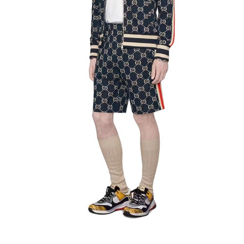 【包税】 GUCCI/古驰 22年秋冬新款 男士蓝色/象牙色纯棉老花提花短裤474632X9V054245
