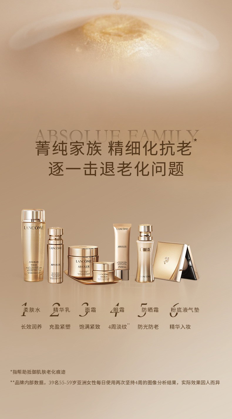 (05促销产品)Lancome/兰蒄菁纯臻颜卓越赋活修护保养套组(菁纯美容液150ml,轻盈版乳霜60ml,滋润版乳霜60ml,精华30ml,眼霜20ml,包包)(化妆品)