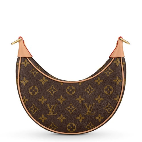 (新品包包)Louis Vuitton/路易威登 22春夏新款LOOP系列 女士经典棕色系老花帆布牛皮革饰边金扣金链单肩手提豌豆月牙包M81098