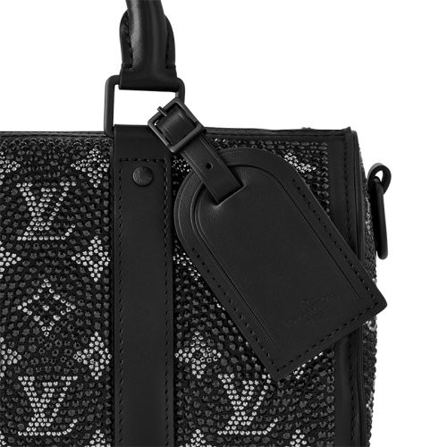 【包税】Louis Vuitton/路易威登 23新款 Keepall 25男士黑色牛皮革/施华洛世奇水晶肩背手提包 M23795