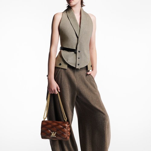LV/Louis Vuitton/路易威登 23新款 女士中号棕褐色菱形绗缝羊皮革扭锁翻盖单肩包 M23601